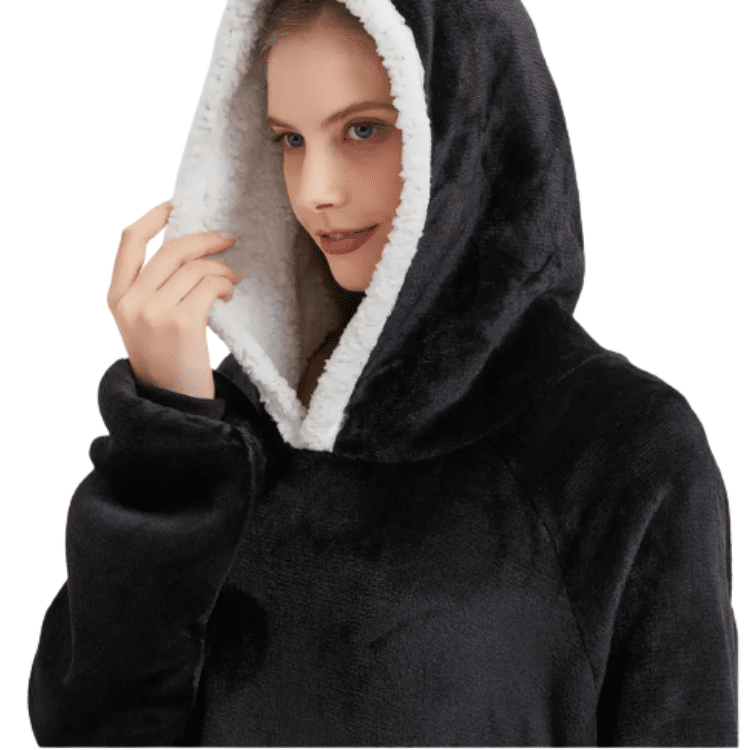 Extra lange zwarte Snuggle hoodie – Unisex volwassene